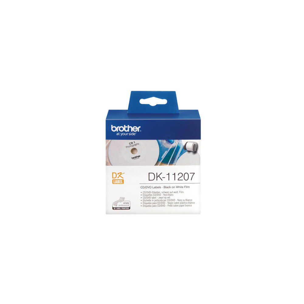 BROTHER DK-11207 FEHÉR ALAPON FEKETE, 58MM, ÖNTAPADÓS CD/DVD ELŐVÁGOTT EREDETI ETIKETT CÍMKE TEKERCSBEN (DK11207)