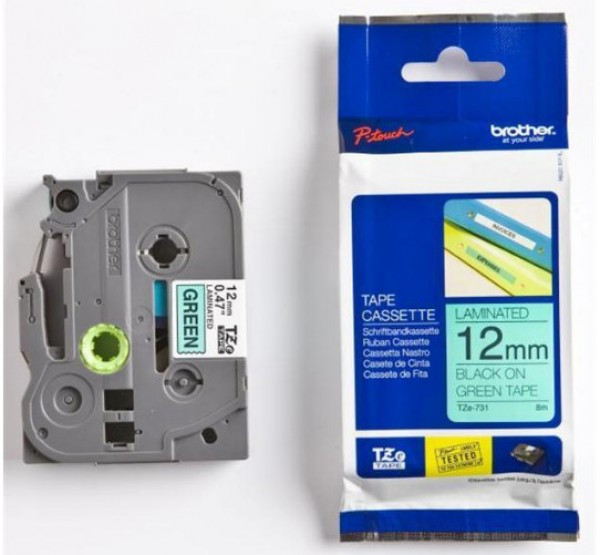 BROTHER TZE-731 ZÖLD ALAPON FEKETE LAMINÁLT 12MM/8M EREDETI SZALAG (TZE731)