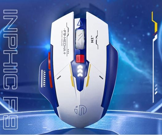 INPHIC F9 WIRELESS EGÉR, MECHA STYLE, KÉK-FEHÉR