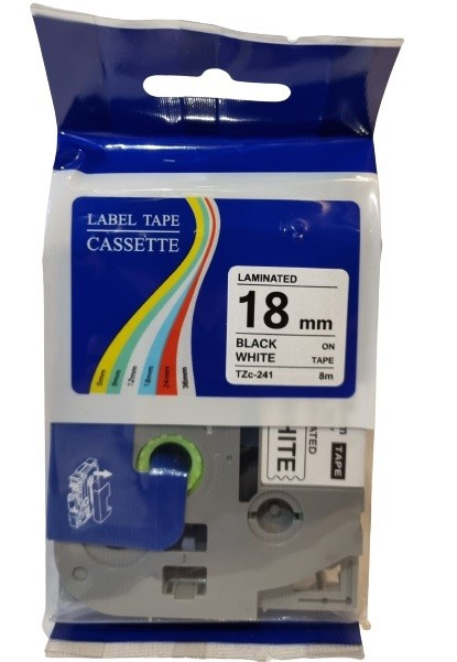 TZe-241 FEHÉR ALAPON FEKETE LAMINÁLT 18MM/8M ÚJ UGY. ZAFÍR SZALAG